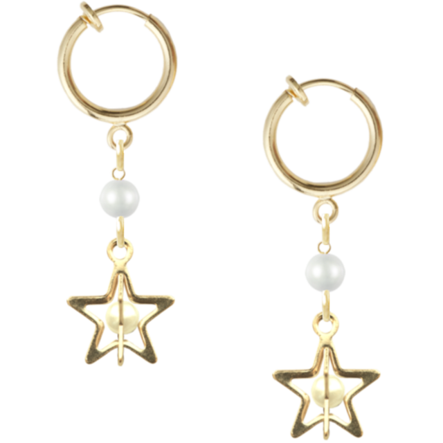 ゴールドの立体スターとパールが揺れる華やかなピアス風イヤリング。